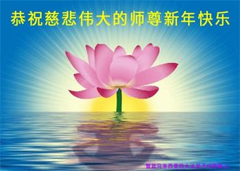 恭祝慈悲伟大的师尊新年快乐! 双手合十敬师前 二十三载从未闲 九拜叩首恭敬献 隔洋感恩寄彼岸 一步一步解危难 新年愿师笑开颜 只言片语难尽诉 从未言苦慈悲度 遵师教诲多救众 无量洪恩挡险关 为救众生承巨难 兑现誓约随师还 暂居马来西亚的大法弟子叩拜敬上 在马来西亚的中国大法弟子恭祝师尊新年快乐!