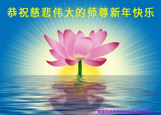 恭祝慈悲伟大的师尊新年快乐! 夜以继日师辛苦 师尊唤醒指迷途 合十叩拜谢师父 洪传大法慈悲度 摆脱名利缠束缚 三字真言师嘱咐 红尘浊世有幸得 大法洗净善良显 时时刻刻铭记心 感恩师尊语难诉 身在浊世心不污 遵师教诲登归途 暂居马来西亚的大法弟子叩拜敬上 暂居马来西亚吉隆坡的大法弟子恭祝慈悲伟大的师尊新年快乐!
