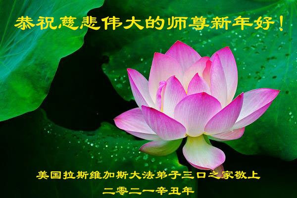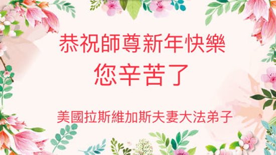 恭祝慈悲伟大的师父新年好!弟子一定听师父的话,在这正法的最后时刻多救人。 洛杉矶大法弟子敬上! 美国拉斯维加斯大法弟子一家三口恭祝慈悲伟大的师尊新年好!