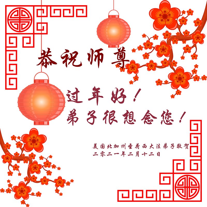 【明慧网二零二一年二月十二日】辛丑年来临之际,美国西部地区加州洛杉矶、旧金山、圣荷西、华盛顿州、西雅图、夏威夷、亚利桑那、拉斯维加斯等地大法弟子给师父拜年!恭祝师尊过年好! 美国旧金山湾区硅谷大法弟子恭祝师尊过年好!