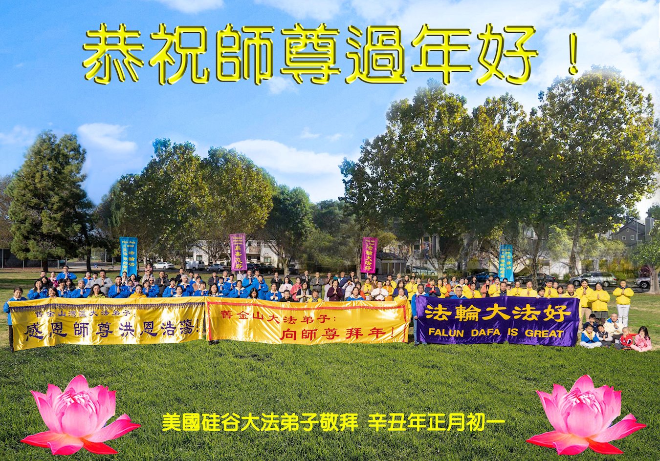 恭祝师尊新年好! 夏威夷全体大法弟子叩拜 美国北加州圣荷西大法弟子恭祝师尊过年好!