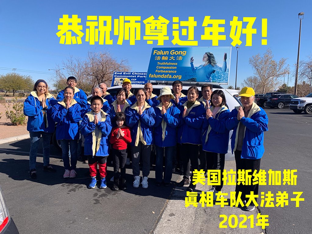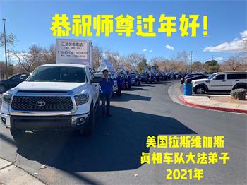 美国拉斯维加斯真相车队大法弟子恭祝师尊过年好!