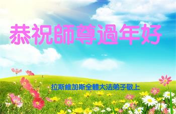 弟子感激师尊时时刻刻的点化、看护、加持与救度。弟子要更加精進,惟愿师尊笑! 美国拉斯维加斯大法弟子恭祝师尊过年好!