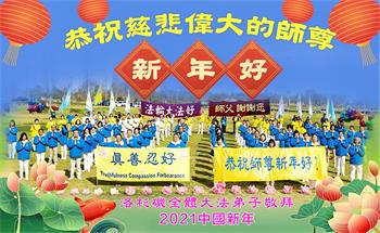 美国洛杉矶全体大法弟子恭祝慈悲伟大的师尊新年好!