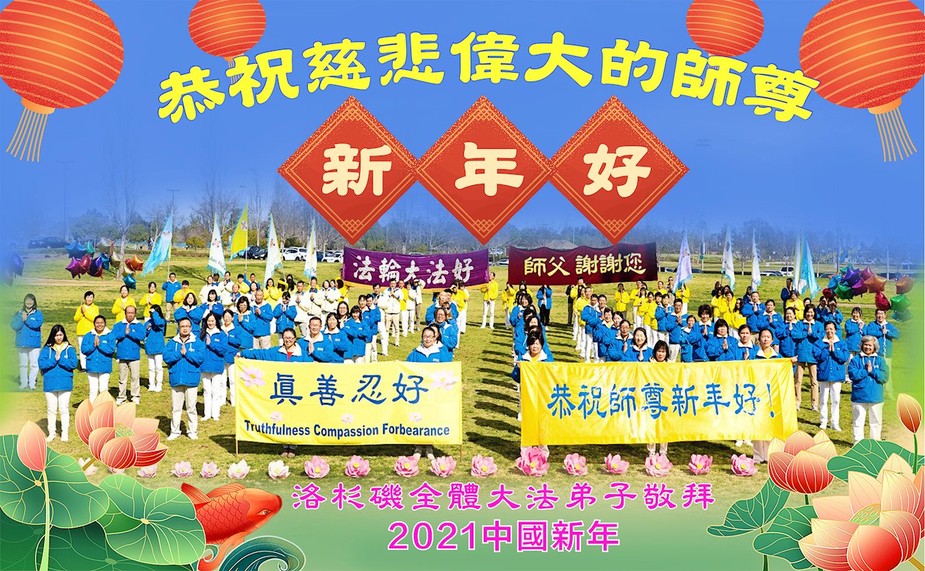 美国洛杉矶大法弟子恭祝师尊中国新年好!