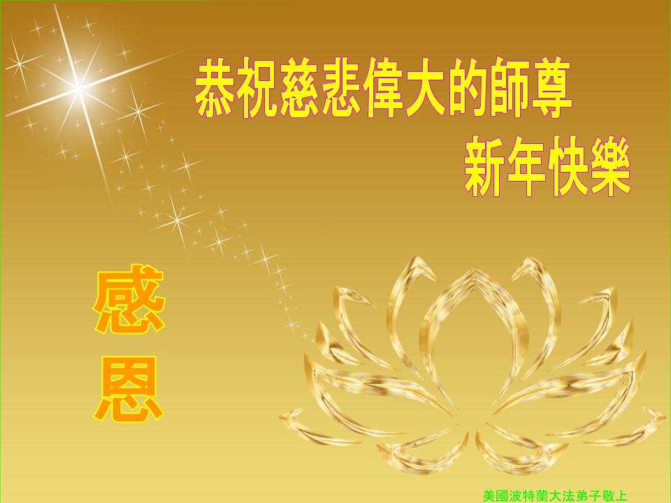 感恩师尊的慈悲苦度! 美国波特兰大法弟子恭祝慈悲伟大的师尊新年快乐!