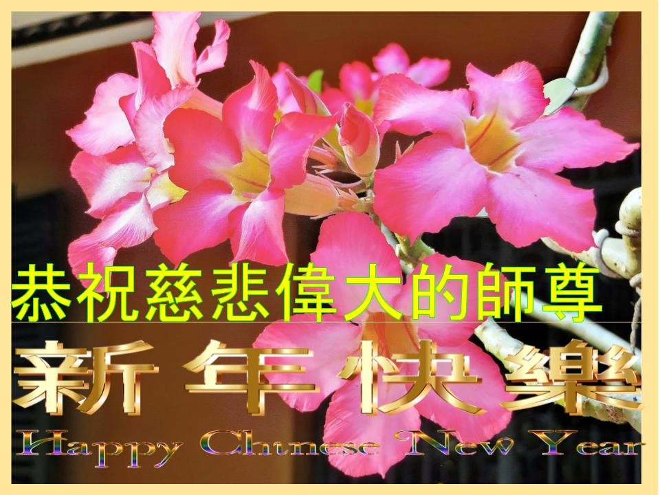 恭祝慈悲伟大的师尊过年好! 夏威夷一大法弟子及家人叩拜 美国华盛顿州西雅图大法弟子恭祝师尊过年好!