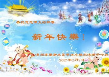【明慧网二零二一年二月十二日】2021年中国新年之际,澳大利亚悉尼、墨尔本、昆士兰、堪培拉、布里斯班、阿德莱德、伊斯特伍德、雷德芬和新西兰新普利茅斯、基督城大法弟子恭祝师尊过年好! 澳大利亚悉尼好市围第二学法小组全体大法弟子恭祝师尊新年快乐!