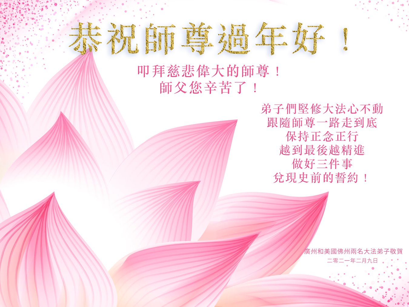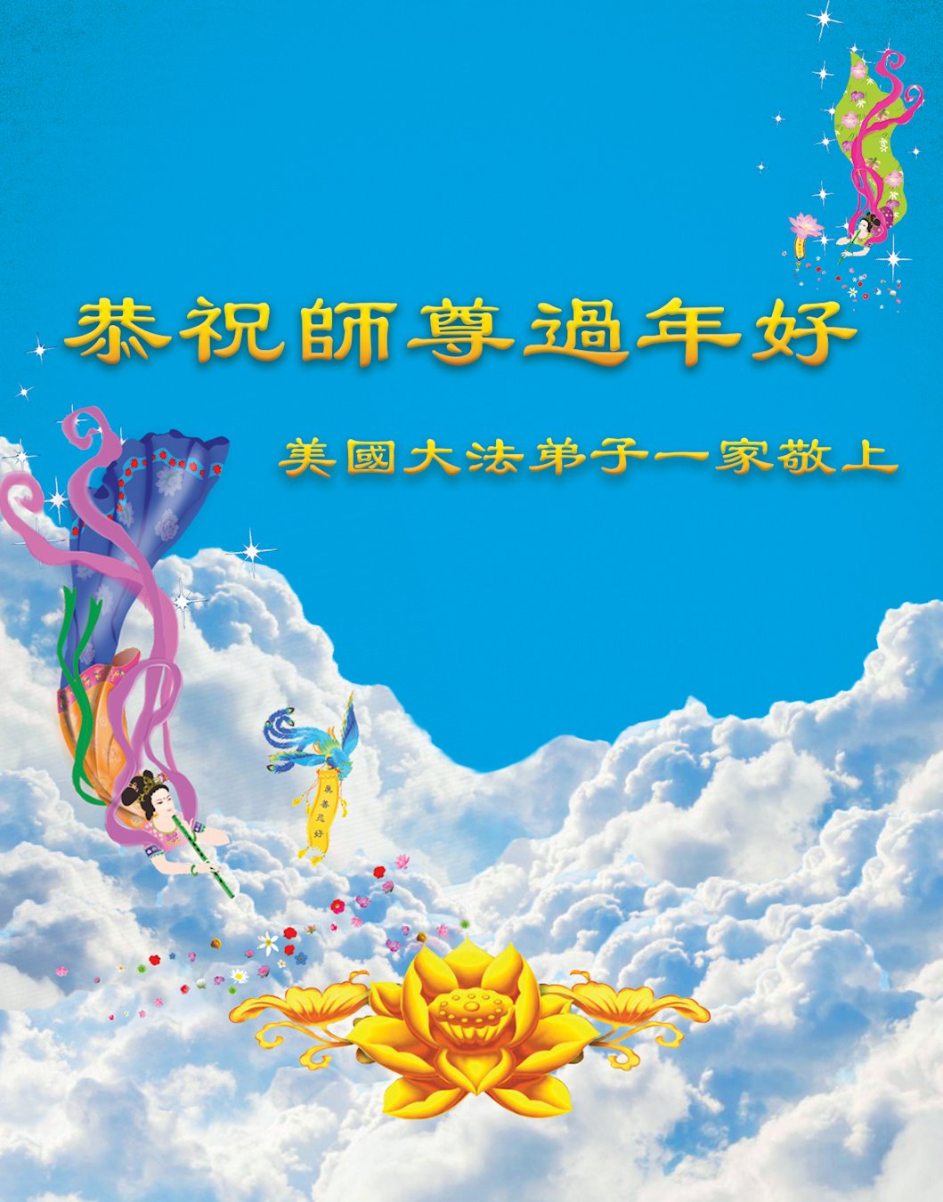 师父辛苦了!感恩师尊慈悲苦度! 美国大法弟子恭祝慈悲伟大的师父中国新年快乐!