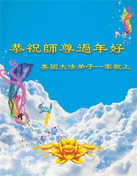 在大陆与美国的一家三位大法弟子恭祝师父新年快乐!