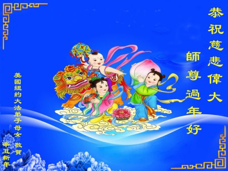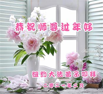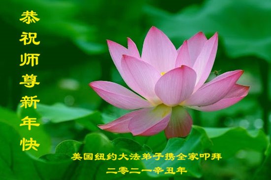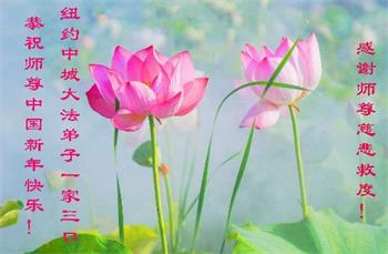 在中国的新年来临之际怀着无限感恩之心给慈悲伟大的师尊拜年!千言万语化作一句:师父新年好!弟子携全家叩拜! 美国纽约一大法弟子携家人恭祝慈悲伟大的师父新年快乐!