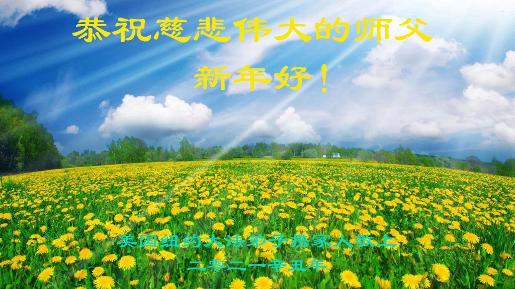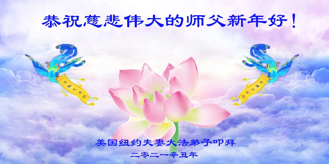 恭祝慈悲伟大的师尊新年快乐!感恩师尊慈悲救度!纽约一大法弟子携大陆全家跪拜师尊! 美国纽约夫妻大法弟子恭祝师尊新年快乐!