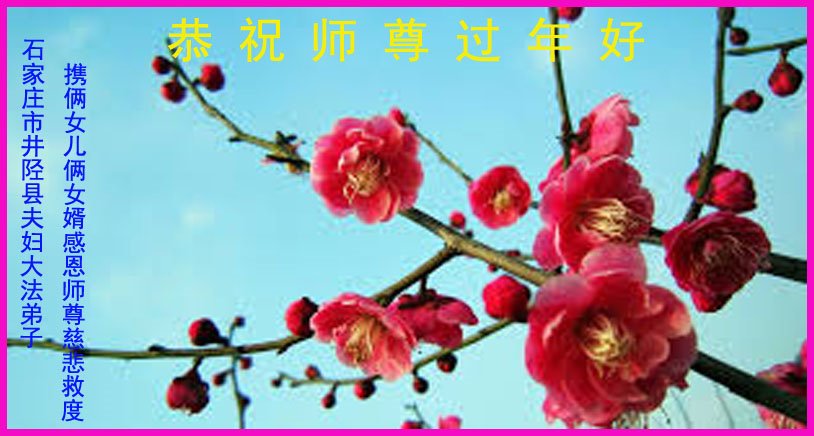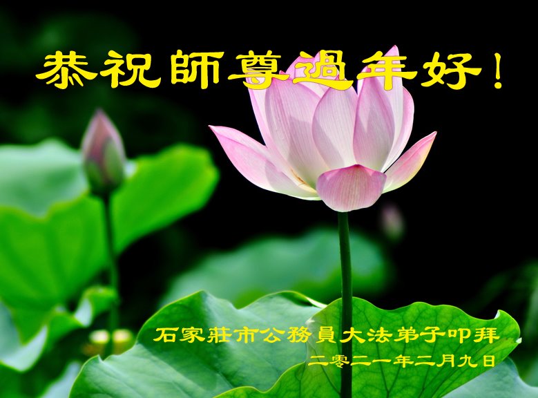 恭祝师尊新年快乐! 石家庄市和平西路一大法弟子及家人敬上 二零二一年二月九日 河北省石家庄市公务员大法弟子恭祝师尊过年好!
