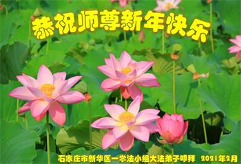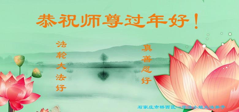 石家庄桥西区一学法小组大法弟子恭祝师尊过年好! 新的一年里,弟子们会更加努力精進,做好三件事,跟师父回家。 河北省石家庄市一学法小组大法弟子恭祝师尊过年好!