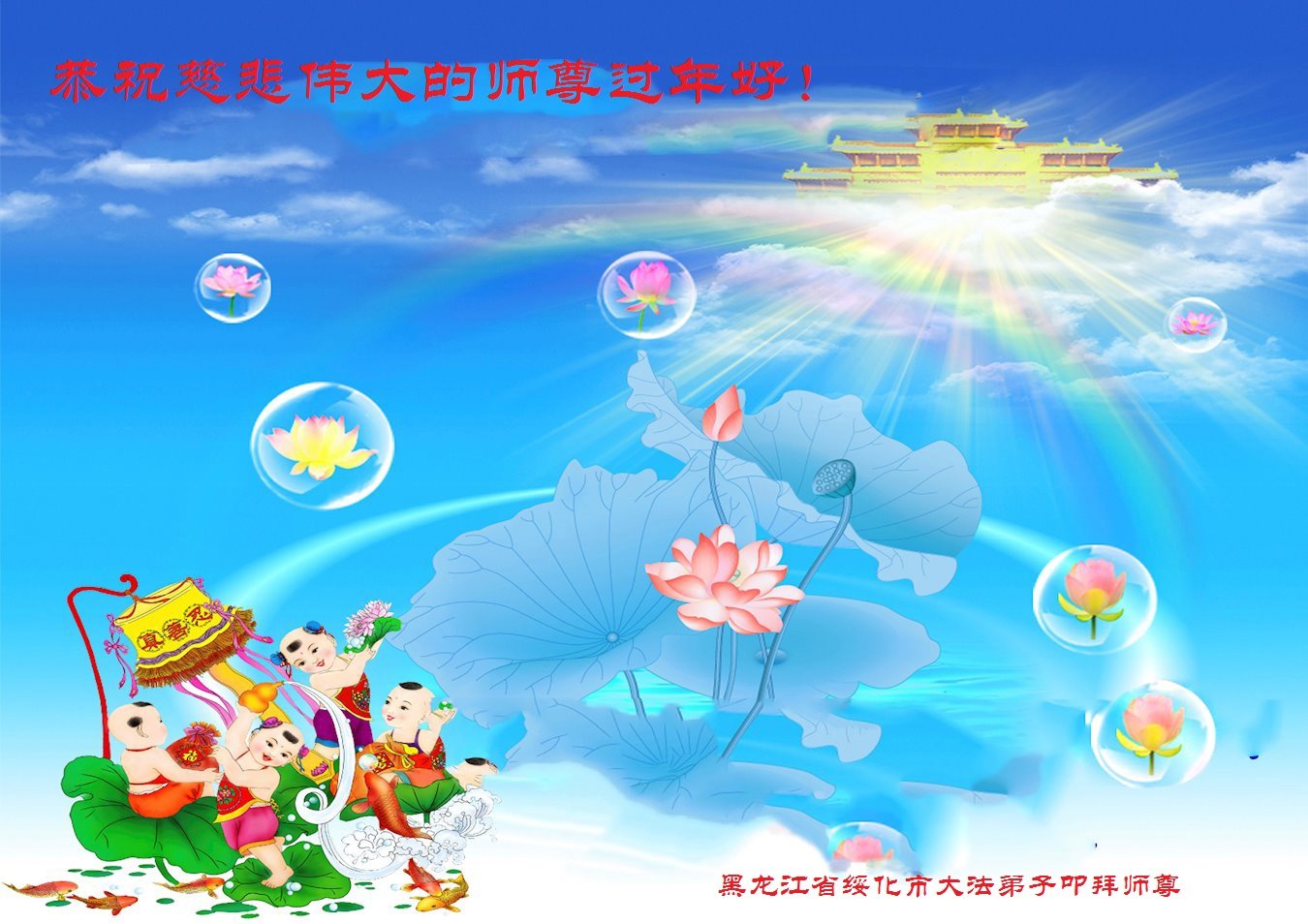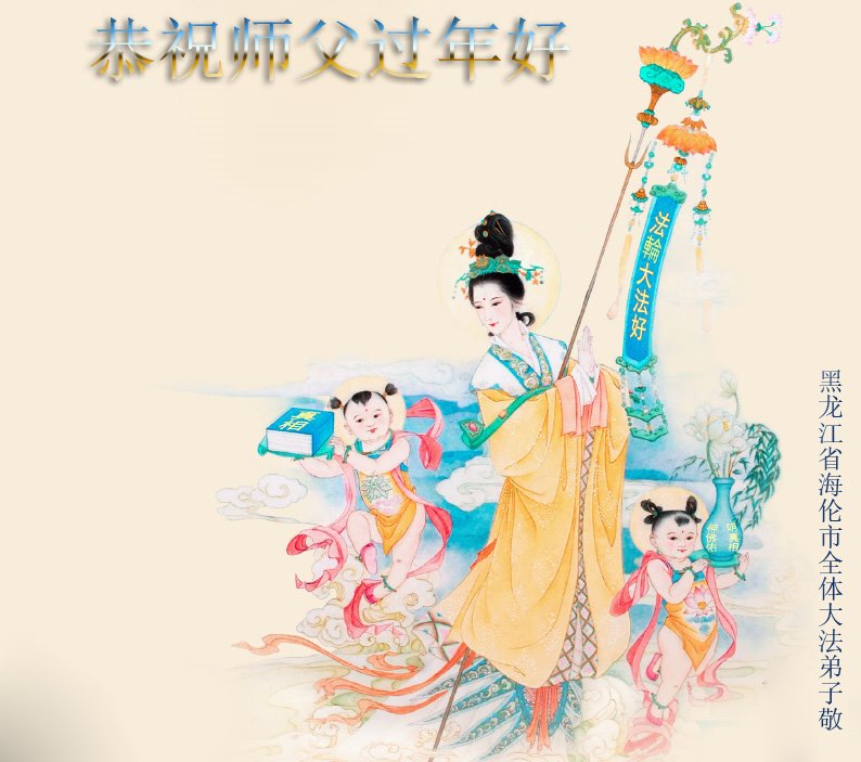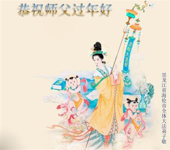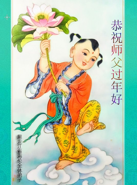 恭祝师父新年好!师父您为度弟子操尽了心,我们无以回报,只有弟子们齐心合力多救世人。 黑龙江省一大法弟子恭祝师尊过年好!