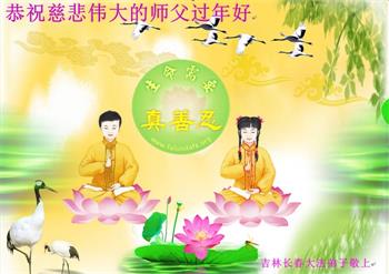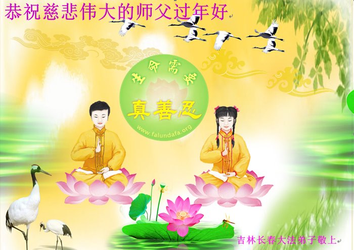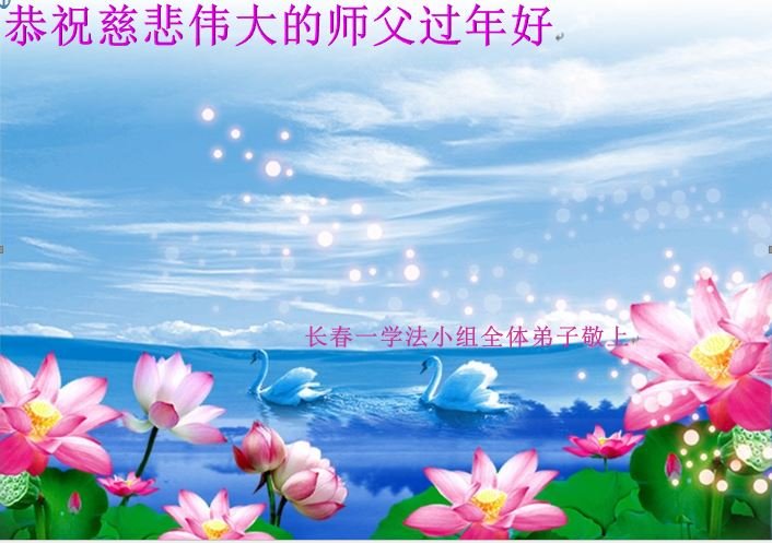 恭祝师父新年快乐!谢谢师父慈悲救度! 吉林省长春市绿园区一学法小组大法弟子恭祝师父过年好!