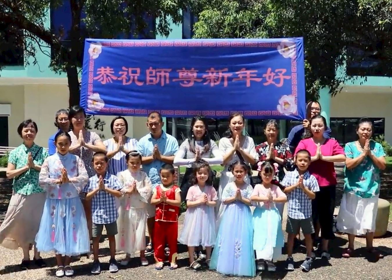| 【明慧网二零二一年二月十二日】(明慧澳洲昆士兰记者站报道)二零二一年中国新年来临之际,澳洲昆士兰部份法轮功学员在当地各个法轮功真相点汇聚,他们满怀感恩的心双手合十,恭祝法轮功创始人李洪志师父新年好! 这些常年在各大“真相点”向当地民众讲真相的法轮功学员分别来自不同族裔、不同行业和年龄。他们秉承法轮功真、善、忍的修炼原则,让当地民众了解到了法轮大法的美好及中共迫害法轮功的真相,他们坚持不懈传递真相的精神也获得了当地民众的支持和赞誉。  图1:澳洲昆士兰大法弟子献给李洪志师父的新年贺卡 |