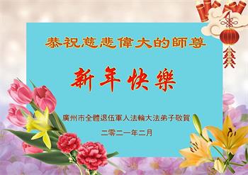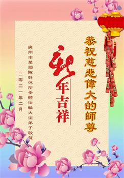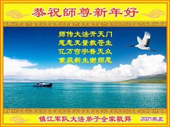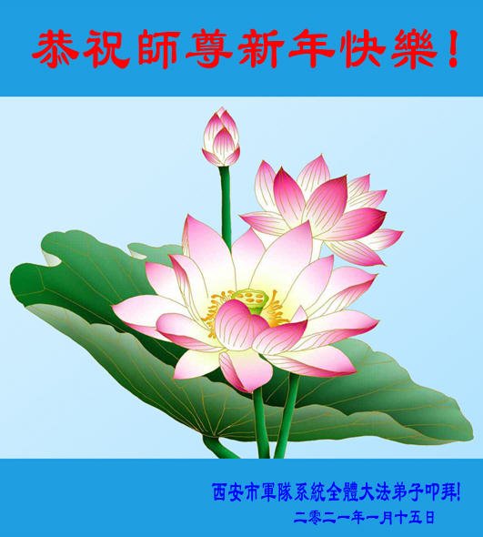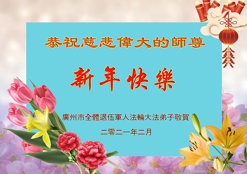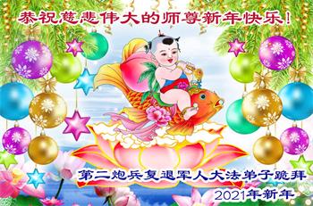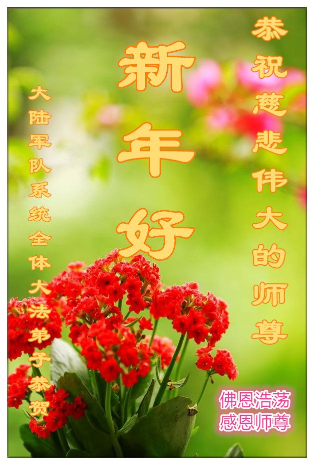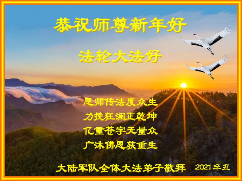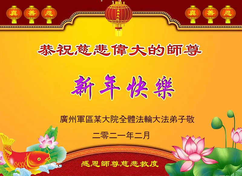 | 【明慧网二零二一年二月十二日】辛丑年新年到了,中国大陆各军区、兵种的大法弟子们恭祝伟大的李洪志师尊过年好! 他们表示:“在末世洪流中,弟子幸遇法轮大法,能够得到师尊的慈悲救度,内心的幸福和荣耀无以言表!弟子一定珍惜这万古难遇的珍贵机缘,做好三件事,救度更多被邪*党-毒害的生命,早日圆满随师还!” 以下为来自陕西、山西、广州军区、成都军区、南京军区、东部战区、新疆兵团、山东军区、二炮、北京空军、总参、江苏镇江、北京军委后保部、军总医院等部的现役和转业军人大法弟子敬致恩师的部份贺信。 原总参退役军官大法弟子恭祝师尊过年好!恭祝师尊过年好! 原总参退役军官大法弟子敬上 2021年2月 北京空军某大院大法弟子给师父拜年!师尊过年好! 在目前世间的这种末后之末的乱象中,我们一定牢记师尊的教诲,摆好自己的位置,做好三件事。不辜负师尊的慈悲苦度。 大陆军队系统全体大法弟子恭祝慈悲伟大的师尊新年好!广东省广州市某部队干休所全体法轮大法弟子恭祝慈悲伟大的师尊新年快乐!陕西省军队系统全体大法弟子恭祝慈悲伟大的师尊新年快乐!西安市军队系统全体大法弟子恭祝慈悲伟大的师尊新年快乐!大陆军队院校系统全体大法弟子恭祝慈悲伟大的师尊新年快乐!广州军区某大院全体法轮大法弟子恭祝慈悲伟大的师尊新年快乐!原成都军区大法弟子恭祝慈悲伟大的师尊过年好!原南京军区全体大法弟子及家属恭祝慈悲伟大的师尊新年快乐!广州市全体退伍军人法轮大法弟子恭祝慈悲伟大的师尊新年快乐!大连退伍军人一家三口恭祝师父新年好!山西省长治市军队干休所大法弟子恭祝师尊新年快乐!在这个乱世迷离的红尘中,邪恶的旧势力在拼命的往下拉人,弟子深感责任重大!弟子一定谨遵师命,利用一切有利的机会,把真相讲给身边的有缘人,让他们看清形势,认清邪*党-的邪恶本质和险恶用心,给自己一个得救的机会,千万不要做了邪*党-的陪葬品! 弟子感恩师尊慈悲救度!合十 原南京军区转业干部恭祝师尊新年快乐!在末世洪流中,弟子幸遇法轮大法,能够得到师尊的慈悲救度,内心的幸福和荣耀无以言表!弟子一定珍惜这万古难遇的珍贵机缘,做好三件事,救度更多被邪*党-毒害的生命,早日圆满随师还! 弟子感恩师尊!跪拜合十 东部战区某集团军大法弟子恭祝师尊新年快乐!在人心不古的红尘末世,弟子深感救人的难度,但是弟子还是要尽自己最大努力去告诉那些被邪*党-谎言蒙蔽的世人:赶快退出邪*党-的党、团、队组织,因为神佛要清算这个恶魔,谁是它其中的一分子,就是被淘汰的对象。慈悲的师父在等着你们醒来! 请师父放心,弟子一定不会让师父失望的! 弟子跪拜师尊!合十 现役军人大法弟子恭祝师尊新年快乐!师尊的恩德比山高,比海深!是伟大的师尊给了宇宙众生重生的机会! 在此正邪大战的关键时刻,弟子一定谨遵师命,利用一切机会,把真相讲给世人,让那些受邪*党-迷惑的生命看清形势,认清邪*党-的险恶用心!赶紧退出邪*党-的一切邪恶组织,摆脱邪*党-的精神枷锁,给自己一个得救的机会! 弟子感恩师尊慈悲救度!合十! 复员、转业、退伍军人大法弟子恭祝师尊新年快乐!伟大慈悲的师尊您好!您辛苦了! 纵使用尽人类的语言,也难以表达弟子对师尊的无限感恩,无法表述弟子对师尊的无尽想念!弟子从未见过师尊本人,但弟子却时时刻刻都感受到师尊您就在弟子身边看护着弟子!十几年的风风雨雨,弟子每前進一步,都离不开师尊的慈悲保护。弟子没有豪言壮语,只有牢记师尊的慈悲教诲,认认真真的做好三件事,不辜负师尊慈悲苦度! 合十 跪拜师尊! 现役军人大法弟子恭祝师尊新年快乐!师尊您好!师父您辛苦了!感恩师尊慈悲苦度! 在新的一年里,弟子们会继续谨遵您的慈悲教诲,学好大法修正自己,不忘使命,克服一切困难,同心协力做好三件事,救度那些被邪*党-毒害的生命,给他们一个得救的机会!圆满的随师父回家! 弟子跪谢师尊救度洪恩!合十 新疆兵团大法弟子恭祝师尊新年快乐!在这千载难逢的正法修炼中,弟子有幸在人间助师正法、救度众生,这是何等的荣耀! 弟子一定珍惜现在的每一分每一秒,与其他的同修互相配合、互相圆容,共同做好三件事,唤醒那些被邪*党-毒害了的生命,兑现自己的史前大愿,圆满随师尊回家! 弟子跪谢师尊救度洪恩!合十 空军部队全体转业干部大法弟子恭祝师尊新年快乐!山东军区一现役军官大法弟子恭祝慈悲伟大的师尊新年快乐!第二炮兵复退军人大法弟子恭祝慈悲伟大的师尊新年快乐!感恩师尊将我从地狱捞起,洗净,弟子一定做好三件事,兑现史前大愿,跟师父回家。 辽宁省军队转业干部大法弟子祝师父新年好!解放军总医院退休干部大法弟子及家属给师父拜年!解放军总医院退休干部大法弟子及家属敬上 二零二一年一月二十九日 山西省国防军工系统全体大法弟子恭祝慈悲伟大的师尊过年好!弟子们想念师尊!感恩师尊慈悲苦度! 我们用尽人间的语言也无法表达对师尊的感激,用什么也无法报答师尊的救度之恩。我们唯有更加勇猛精進,珍惜转瞬即逝的万古机缘,放下一切人心执着,紧跟师尊正法進程,学好法修好自己,多救人,唯愿师尊笑! 弟子叩拜师尊! 双手合十 山西国防军工系统全体大法弟子敬上 北京军委后保部退休干部、转业军人大法弟子及家属向师父拜年!尊敬的师父,您