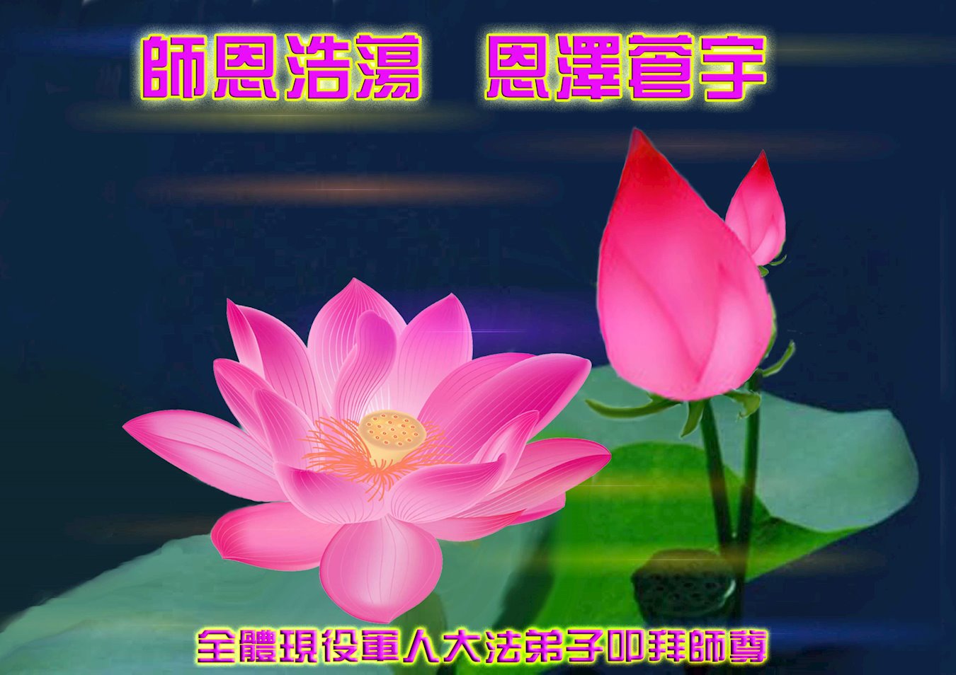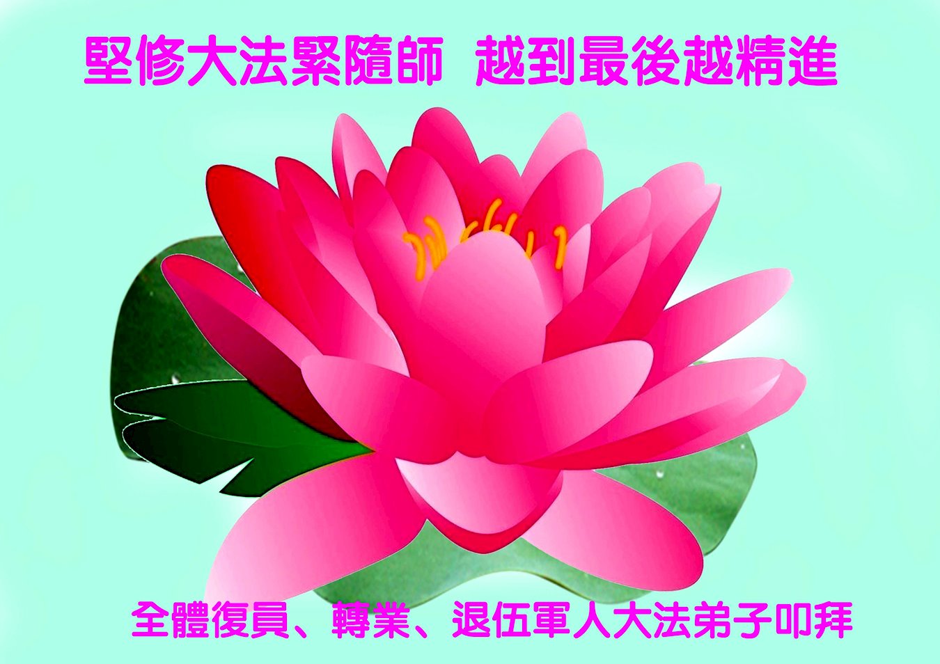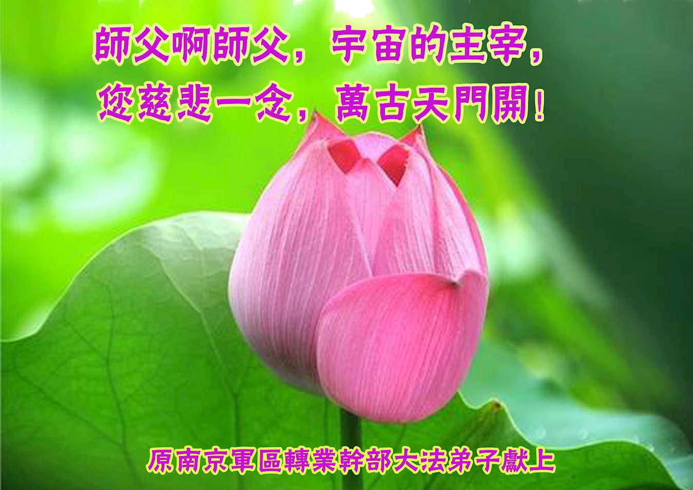 | 【明慧网二零二一年二月十二日】辛丑年新年到了,中国大陆各军区、兵种的大法弟子们恭祝伟大的李洪志师尊过年好! 他们表示:“在末世洪流中,弟子幸遇法轮大法,能够得到师尊的慈悲救度,内心的幸福和荣耀无以言表!弟子一定珍惜这万古难遇的珍贵机缘,做好三件事,救度更多被邪*党-毒害的生命,早日圆满随师还!” 以下为来自陕西、山西、广州军区、成都军区、南京军区、东部战区、新疆兵团、山东军区、二炮、北京空军、总参、江苏镇江、北京军委后保部、军总医院等部的现役和转业军人大法弟子敬致恩师的部份贺信。 原总参退役军官大法弟子恭祝师尊过年好!恭祝师尊过年好! 原总参退役军官大法弟子敬上 2021年2月 北京空军某大院大法弟子给师父拜年!师尊过年好! 在目前世间的这种末后之末的乱象中,我们一定牢记师尊的教诲,摆好自己的位置,做好三件事。不辜负师尊的慈悲苦度。 大陆军队系统全体大法弟子恭祝慈悲伟大的师尊新年好!广东省广州市某部队干休所全体法轮大法弟子恭祝慈悲伟大的师尊新年快乐!陕西省军队系统全体大法弟子恭祝慈悲伟大的师尊新年快乐!西安市军队系统全体大法弟子恭祝慈悲伟大的师尊新年快乐!大陆军队院校系统全体大法弟子恭祝慈悲伟大的师尊新年快乐!广州军区某大院全体法轮大法弟子恭祝慈悲伟大的师尊新年快乐!原成都军区大法弟子恭祝慈悲伟大的师尊过年好!原南京军区全体大法弟子及家属恭祝慈悲伟大的师尊新年快乐!广州市全体退伍军人法轮大法弟子恭祝慈悲伟大的师尊新年快乐!大连退伍军人一家三口恭祝师父新年好!山西省长治市军队干休所大法弟子恭祝师尊新年快乐!在这个乱世迷离的红尘中,邪恶的旧势力在拼命的往下拉人,弟子深感责任重大!弟子一定谨遵师命,利用一切有利的机会,把真相讲给身边的有缘人,让他们看清形势,认清邪*党-的邪恶本质和险恶用心,给自己一个得救的机会,千万不要做了邪*党-的陪葬品! 弟子感恩师尊慈悲救度!合十 原南京军区转业干部恭祝师尊新年快乐!在末世洪流中,弟子幸遇法轮大法,能够得到师尊的慈悲救度,内心的幸福和荣耀无以言表!弟子一定珍惜这万古难遇的珍贵机缘,做好三件事,救度更多被邪*党-毒害的生命,早日圆满随师还! 弟子感恩师尊!跪拜合十 东部战区某集团军大法弟子恭祝师尊新年快乐!在人心不古的红尘末世,弟子深感救人的难度,但是弟子还是要尽自己最大努力去告诉那些被邪*党-谎言蒙蔽的世人:赶快退出邪*党-的党、团、队组织,因为神佛要清算这个恶魔,谁是它其中的一分子,就是被淘汰的对象。慈悲的师父在等着你们醒来! 请师父放心,弟子一定不会让师父失望的! 弟子跪拜师尊!合十 现役军人大法弟子恭祝师尊新年快乐!师尊的恩德比山高,比海深!是伟大的师尊给了宇宙众生重生的机会! 在此正邪大战的关键时刻,弟子一定谨遵师命,利用一切机会,把真相讲给世人,让那些受邪*党-迷惑的生命看清形势,认清邪*党-的险恶用心!赶紧退出邪*党-的一切邪恶组织,摆脱邪*党-的精神枷锁,给自己一个得救的机会! 弟子感恩师尊慈悲救度!合十! 复员、转业、退伍军人大法弟子恭祝师尊新年快乐!伟大慈悲的师尊您好!您辛苦了! 纵使用尽人类的语言,也难以表达弟子对师尊的无限感恩,无法表述弟子对师尊的无尽想念!弟子从未见过师尊本人,但弟子却时时刻刻都感受到师尊您就在弟子身边看护着弟子!十几年的风风雨雨,弟子每前進一步,都离不开师尊的慈悲保护。弟子没有豪言壮语,只有牢记师尊的慈悲教诲,认认真真的做好三件事,不辜负师尊慈悲苦度! 合十 跪拜师尊! 现役军人大法弟子恭祝师尊新年快乐!师尊您好!师父您辛苦了!感恩师尊慈悲苦度! 在新的一年里,弟子们会继续谨遵您的慈悲教诲,学好大法修正自己,不忘使命,克服一切困难,同心协力做好三件事,救度那些被邪*党-毒害的生命,给他们一个得救的机会!圆满的随师父回家! 弟子跪谢师尊救度洪恩!合十 新疆兵团大法弟子恭祝师尊新年快乐!在这千载难逢的正法修炼中,弟子有幸在人间助师正法、救度众生,这是何等的荣耀! 弟子一定珍惜现在的每一分每一秒,与其他的同修互相配合、互相圆容,共同做好三件事,唤醒那些被邪*党-毒害了的生命,兑现自己的史前大愿,圆满随师尊回家! 弟子跪谢师尊救度洪恩!合十 空军部队全体转业干部大法弟子恭祝师尊新年快乐!山东军区一现役军官大法弟子恭祝慈悲伟大的师尊新年快乐!第二炮兵复退军人大法弟子恭祝慈悲伟大的师尊新年快乐!感恩师尊将我从地狱捞起,洗净,弟子一定做好三件事,兑现史前大愿,跟师父回家。 辽宁省军队转业干部大法弟子祝师父新年好!解放军总医院退休干部大法弟子及家属给师父拜年!解放军总医院退休干部大法弟子及家属敬上 二零二一年一月二十九日 山西省国防军工系统全体大法弟子恭祝慈悲伟大的师尊过年好!弟子们想念师尊!感恩师尊慈悲苦度! 我们用尽人间的语言也无法表达对师尊的感激,用什么也无法报答师尊的救度之恩。我们唯有更加勇猛精進,珍惜转瞬即逝的万古机缘,放下一切人心执着,紧跟师尊正法進程,学好法修好自己,多救人,唯愿师尊笑! 弟子叩拜师尊! 双手合十 山西国防军工系统全体大法弟子敬上 北京军委后保部退休干部、转业军人大法弟子及家属向师父拜年!尊敬的师父,您