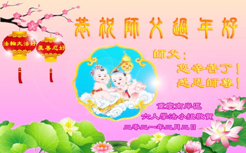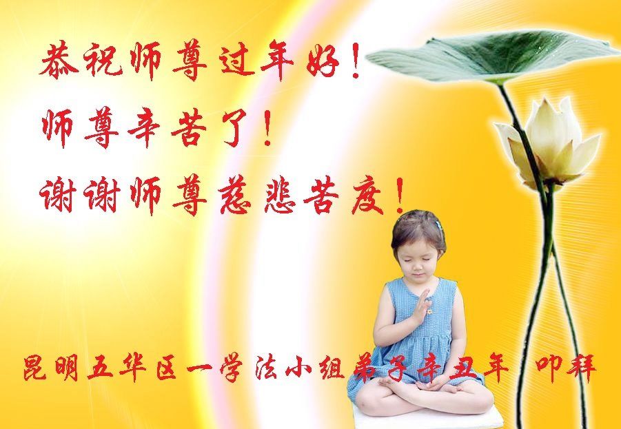 | 【明慧网二零二一年二月十二日】爆竹声声辞旧岁,梅花点点笑迎春。在慈悲伟大的师父的保护下,中国大法弟子迎来了二零二一年的传统新年,此时,遍布中国各地自发成立的学法小组的大法弟子们跪拜师父,恭祝师尊过年好! 朵朵净莲法中开 亿众弟子结缘来 各显神通除魔害 修心去执不懈怠 朵朵净莲法中开 正念除恶扫尘埃 助师正法救众生 圆满回归坐莲台 各学法小组的大法弟子们相互鼓励,遵循真、善、忍的法理修炼。二十多年来,虽历经血与火的洗礼,炼出的是坚忍和慈悲。大法弟子表示,“我们坚信师尊留给弟子的修炼形式是最好的,不管遇到什么形势的变化,我们小组始终坚持一起学法,有条件时一起炼功、做三件事。由于一直坚持不懈,我们受益良多,师尊请放心,我们会一直坚持下去的,更加精進。” 湖南衡阳市五个学法小组全体大法弟子恭祝慈悲伟大的师尊过年好!新的一年即将到来!回顾漫漫的修炼路,止不住泪如泉涌:是慈悲伟大的师尊将我们从地狱中捞起;是慈悲伟大的师尊为我们无偿的付出承受使我们登上了回家的归途;是慈悲伟大的师尊含辛茹苦的操劳保护使我们度过了一个个艰难险关;是慈悲伟大师尊的谆谆教诲使我们不畏艰难、坚定正念、整体配合、法中升华、救度众生兑现誓约! 无量众生被大法救度,走向新生;无量苍宇大穹万物生灵展新颜。我们的感恩、众生的感恩、都化作一愿:恭祝慈悲伟大的师尊过年好!师尊您辛苦了!衷心献上一曲我们心中的歌“惟愿师尊笑”! 湖南衡阳市五个学法小组全体大法弟子叩拜! 河南省郑州市一学法小组大法弟子恭祝师尊过年好!新年快乐!中国新年来临之际,我们感恩大法!感恩师父!谢谢师父! 恭祝师父过年好!中国新年快乐! 弟子们都深深体会到,能够得法是我们一生中最幸福最珍贵的,如果没有修炼,真觉的人活着一点意思都没有! 只有修炼后,才感觉到修炼的美妙和超脱出常人的争争斗斗的轻松和愉快。是修炼让我们脱胎换骨一样,心灵的安静和身体的健康使我们尝到重生的愉悦。 二十多年来,跟随师父走过了风风雨雨,每一步都在师尊的保护中引导中前行。师父用巨大的承受为我们换来了修炼的机缘,师父给予我们的太多太多…… 我们只有加倍珍惜这修炼的机缘,时时处处保持正念和理智,用法指导自己精進实修,修掉一切执着,做好三件事,不辜负师尊的慈悲救度,不辜负众生对我们的殷切期盼,跟师尊回家。 郑州一学法小组大法弟子敬上 二零二一年二月一日 重庆市双碑一学法小组大法弟子恭祝慈悲伟大的师尊新年快乐!弟子们感恩师尊慈悲救度保护!弟子们走到今天,弟子们在最后时刻一定要做好三件事,跟师尊回家,弟子们感恩师尊、谢谢师尊! 小组全体大法弟敬拜 河北省秦皇岛市山海关区一学法小组大法弟子恭祝慈悲伟大的师尊新年快乐!师尊您辛苦了!弟子跪谢师恩!多谢师尊慈悲救度!新的一年里,弟子做好三件事,在法中修得平静、祥和,用善的力量感化众生,走到哪里都是正的,正一切不正的。谢谢师尊教诲!弟子再次感谢师尊! 法光耀苍宇 百花开 天降祥瑞 普照七彩色 大法传 真言撒金 亮透九层天 天津市蓟州区一学法小组大法弟子恭祝师尊过年好!弟子的每一步提高都离不开师父的保护和慈悲救度,感谢师父不离不弃的牵着我的手,今生让我成为大法弟子,幸遇大法这万古机缘,真的是万分的荣耀。师父您的巨大承受才有众生得救的机会,才有我们修炼的机缘,千言万语都道不尽师恩浩荡!在这末后的末后,我们一定谨遵师父教诲,不被常人社会带动,不辜负众生的期盼,学好法,修好自己,多救人,和师父回家。 北京市一学法小组全体大法弟子敬祝伟大师尊新年好!庚子年将尽,庚子事未平。年初江汉起瘟疫,肆虐全球犹未停;年尾末世乱象,鬼魅横行,拖拽社会下滑,诱惑世人沉沦。神魔之战,正邪之争,几人能眼明心净?大法弟子身在世人中,心在世人外。红尘白浪撼不动修者心。 坚定信师信法,讲真相救众生,雷打不动!繁纷的世事是我们讲真相,揭邪恶,唤醒迷茫众生的平台。 大陆大法弟子历劫二十余年的迫害,近期更升级全民监控、清零行动。那只是恶势力末日的疯狂,吓不住大法弟子,迎着连宵风雨我们走过来了!灭除红魔,荡尽妖氛,天降祥瑞,地吐金莲,佛光普照,法正人间的日子不远了! 请师父放心,弟子们一定牢记师训,做好三件事,讲真相救众生不懈不停。兑现史前的誓约、回报师父的洪恩,越到最后越精進!再一次恭祝慈悲伟大的师尊新年好! 北京一学法小组全体大法弟子敬上! 河北保定市易县一学法小组大法弟子恭祝师尊新年快乐!师父您好!师父您辛苦了! 爆竹声声辞旧岁,梅花点点笑迎春。大法弟子在慈悲伟大的师父的保护下一路走来。中国大陆的大法弟子想念师父!无限感恩师父的慈悲苦度! 在中国新年即将来临之时,弟子们跪拜师父恭祝师尊新春快乐!弟子们唯有精進实修,做好三件事,跟师父回家。 吉林省白城市一三人学法小组大法弟子恭祝慈悲伟大的师尊过年好!过年快乐!吉林省白城市一三人学法小组大法弟子恭祝慈悲伟大的师尊过年好!过年快乐!师尊您辛苦了!弟子叩拜师尊!感恩师尊慈悲苦度! 感恩师尊把我们从地狱中捞起、洗净,千言万语难以表达,我们唯有在最后的最后的时间里学好法,修好自己,多救人,整体提高,整体升华,堂堂正正的共同走出人,真正的走向神,跟师父回