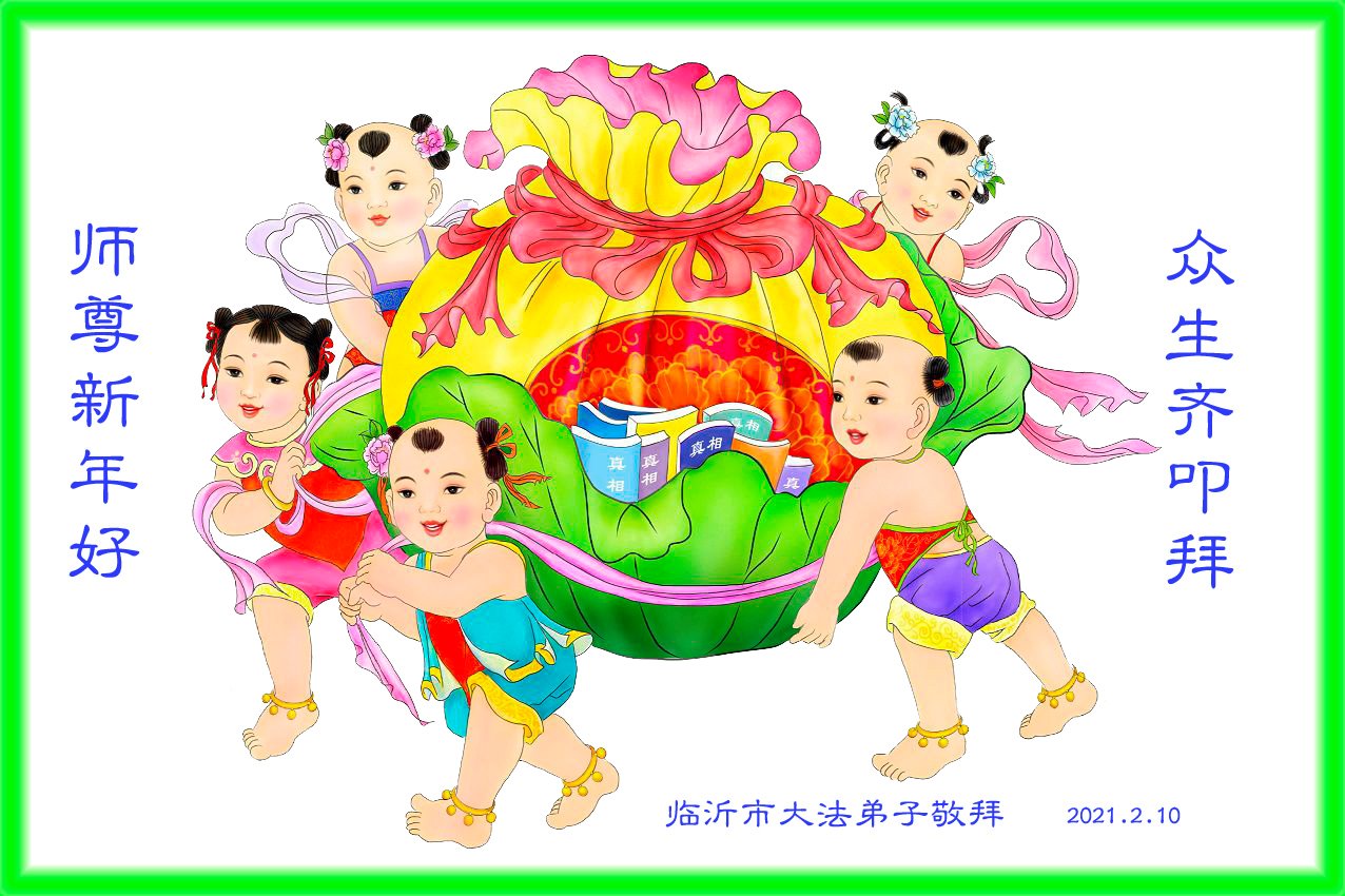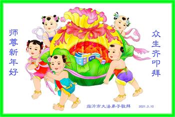 【明慧网二零二一年二月十二日】 山东省临沂市平邑县全体大法弟子恭祝慈悲伟大的师尊新年快乐!