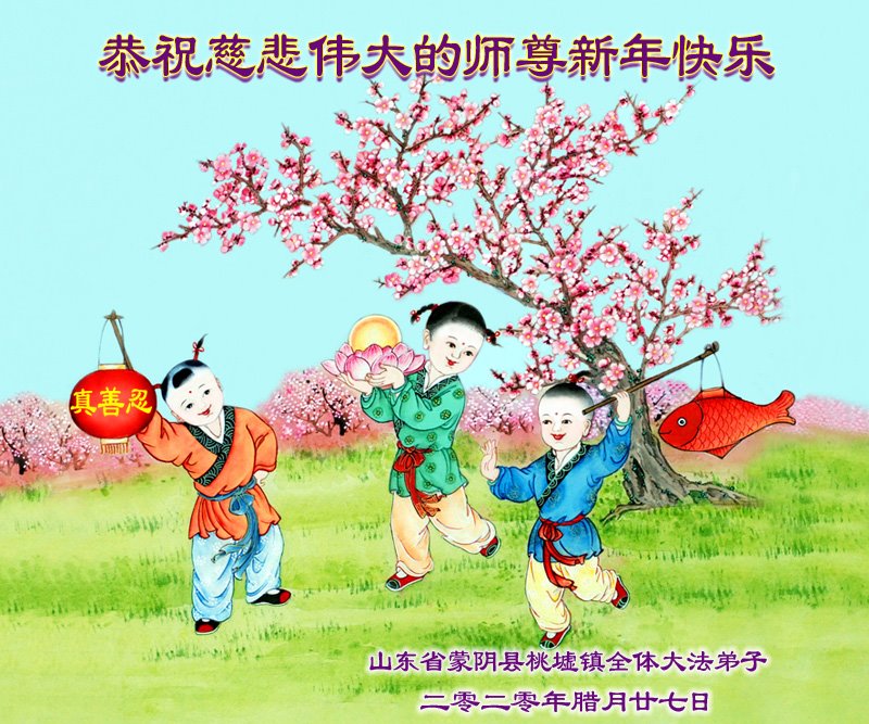 山东省临沂市蒙阴县桃墟镇全体大法弟子恭祝慈悲伟大的师尊新年快乐!