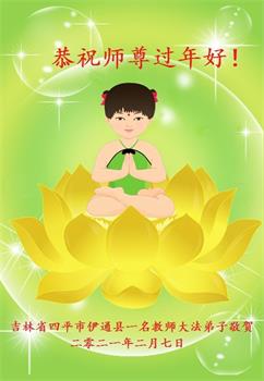 吉林省四平市伊通县一名教师大法弟子恭祝师尊过年好!