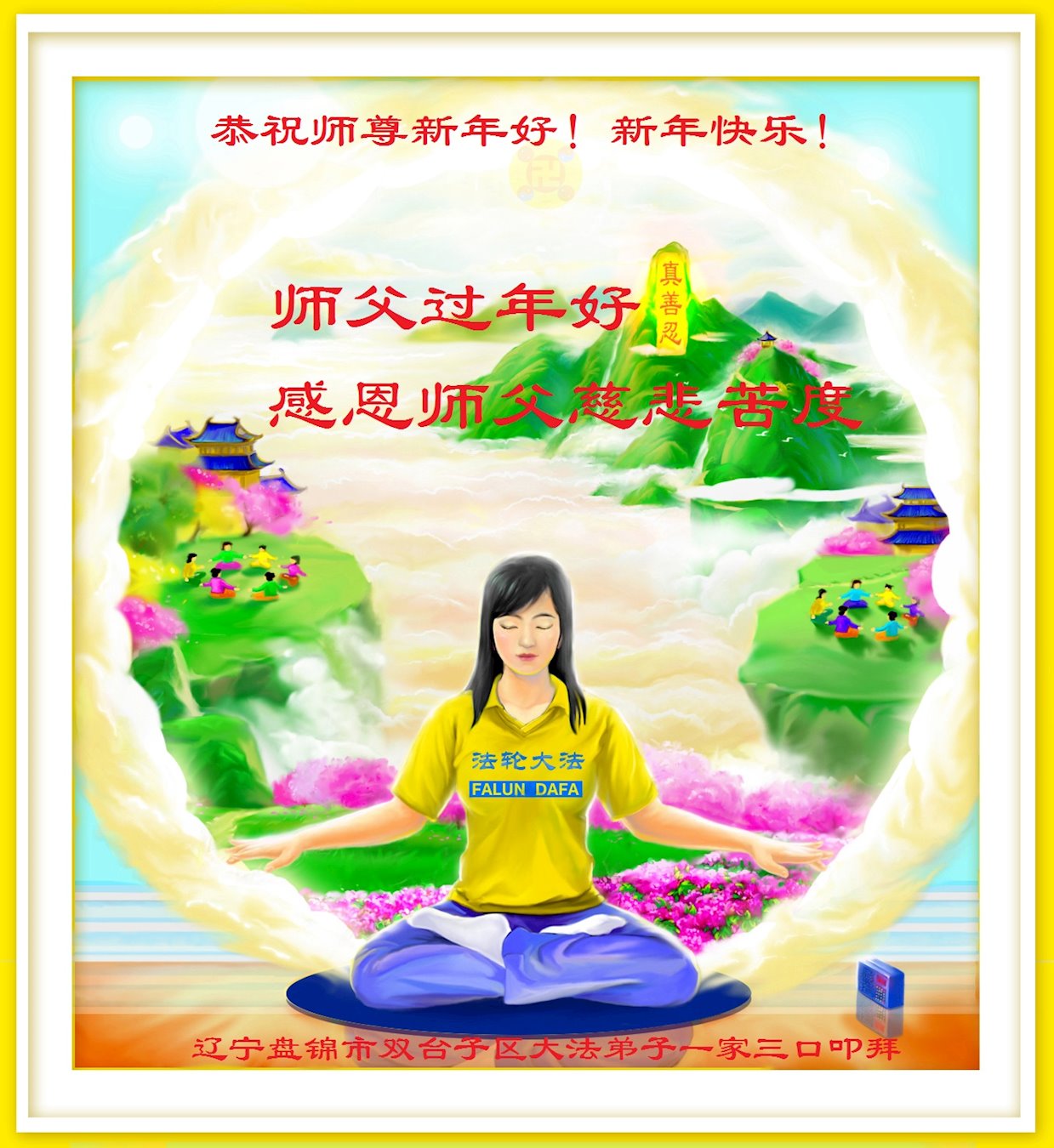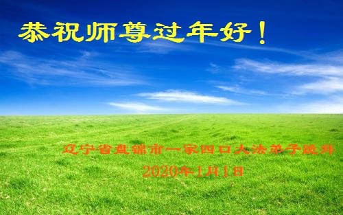 师父过年好,师父辛苦了。 时间飞逝如电,转眼又一年,在新的一年里,弟子一如既往的继续做好自己份内该做的事,圆容整体,默默配合,救度众生,早日踏上回归的法船。 辽宁省盘山县羊圈子镇一大法弟子 合十 庚子年十二月十八日 辽宁省盘锦市一家四口大法弟子恭祝师尊过年好!