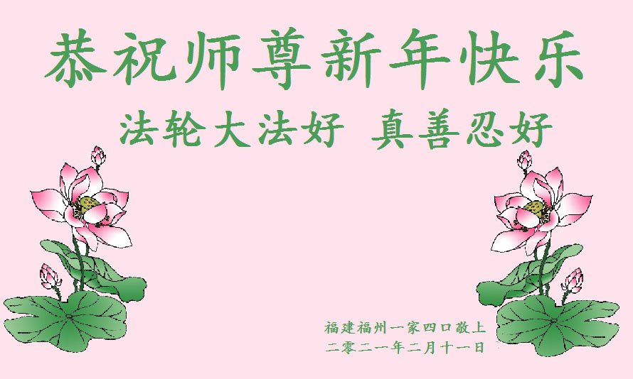 福建省福州市一大法弟子携家人恭祝慈悲伟大的师父过年好!