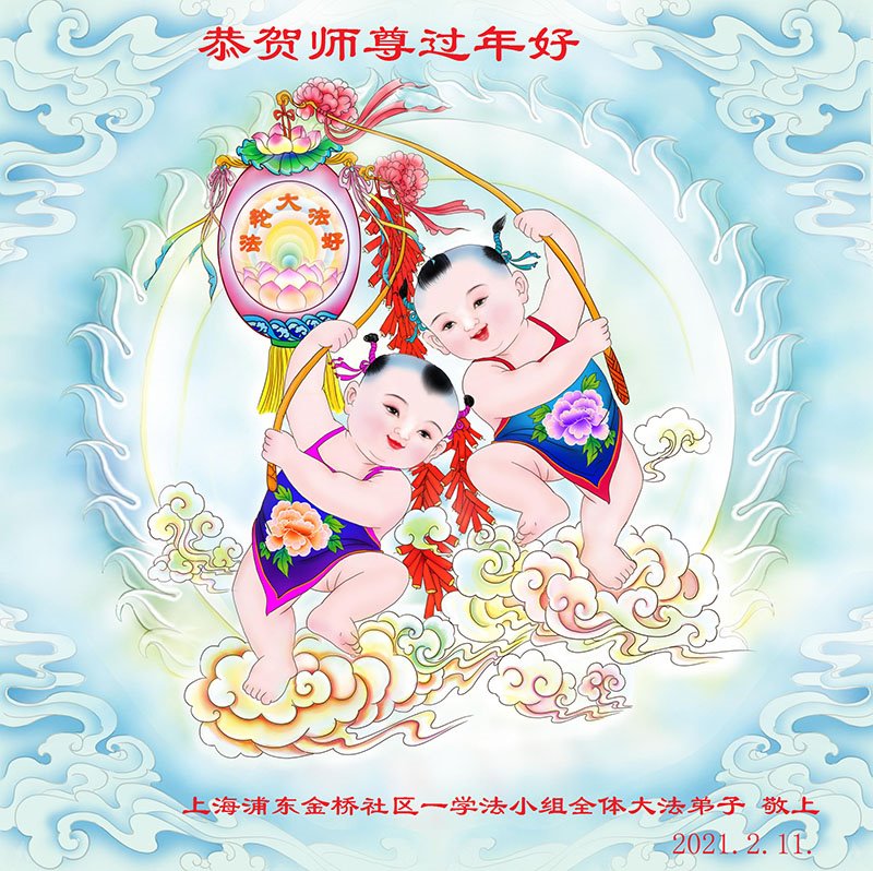 上海浦东金桥社区一学法小组全体大法弟子给师尊拜年!恭祝师尊过年好!