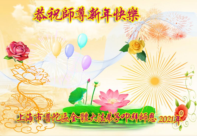 师尊您好!我代表上海市普陀区全体大法弟子向慈悲伟大的师尊恭祝新年快乐!我们要抓紧抢人救人,不留遗憾!