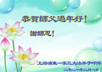 上海市浦东区一家大法弟子三人恭祝师父过年好!