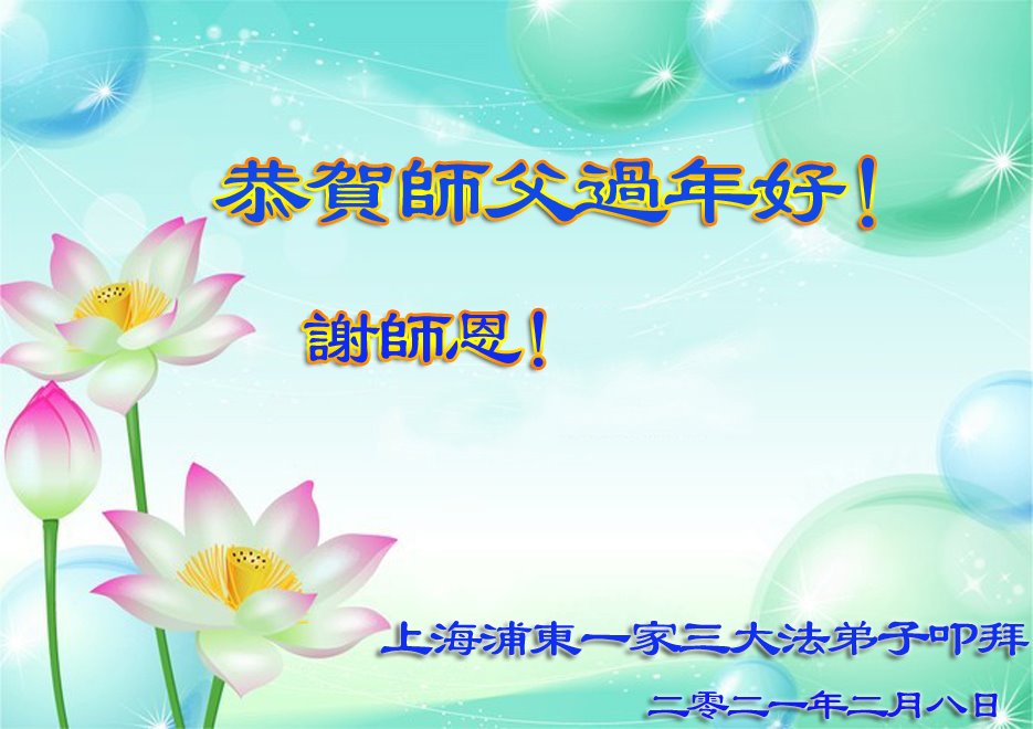 感恩师尊的慈悲看护,恭祝师尊新年快乐! 弟子一定精進、再精進! 上海松江大法弟子敬上 二零二一年二月七日