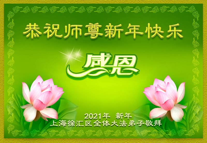 上海全体大法弟子给慈悲伟大的师尊拜年!恭祝慈悲伟大的师尊过年好!