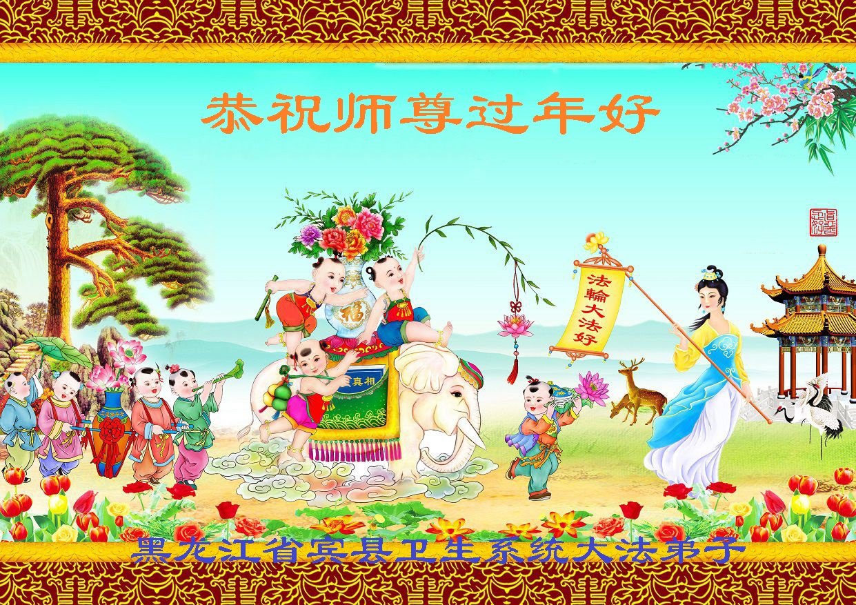 黑龙江省哈尔滨市宾县卫生系统大法弟子恭祝师尊过年好!