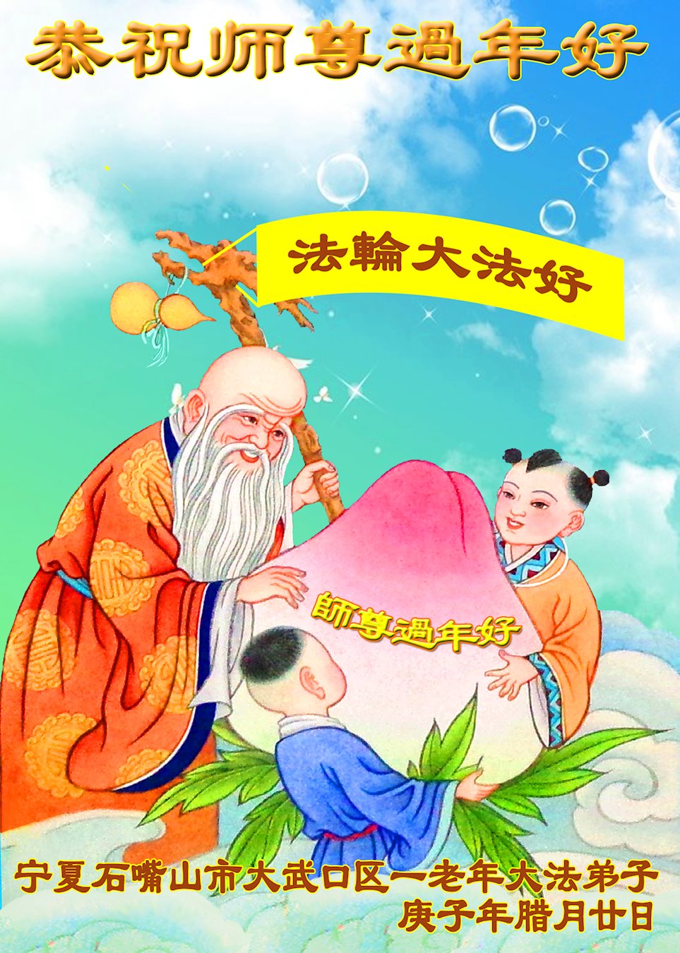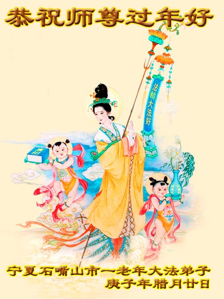 宁夏石嘴山市一老年大法弟子恭祝慈悲伟大的师尊过年好!