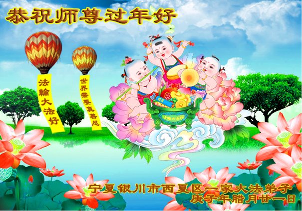 宁夏银川市一家大法弟子恭祝慈悲伟大的师尊过年好!