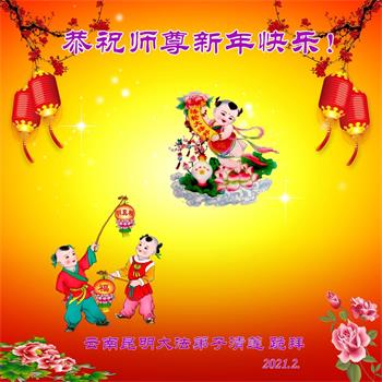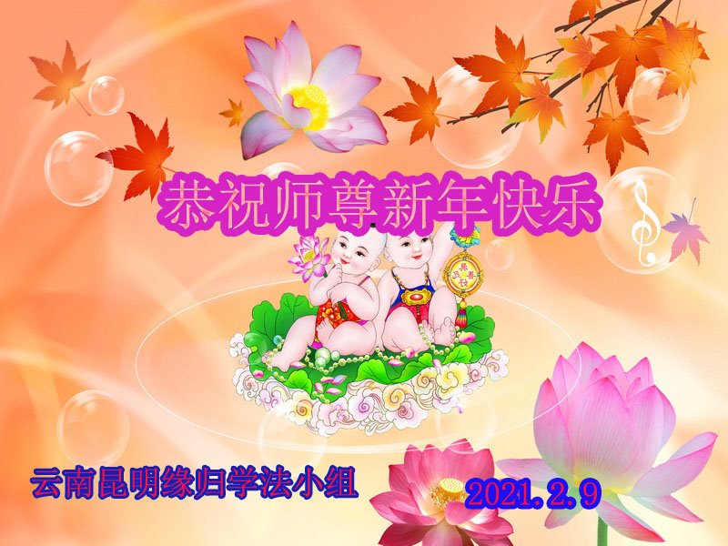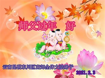 云南省昆明市一学法小组大法弟子恭祝师尊过年快乐!