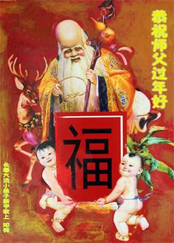 山东济南市天桥区一大法弟子携小弟子恭祝师尊新年快乐!