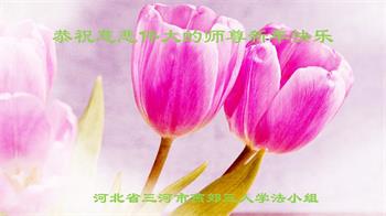 我们是河北省廊坊市安次区一学法小组的大法弟子,我们在师尊您的慈悲呵护下,已走过了二十多年的修炼历程。在今后不多的修炼时间里,我们要更加精進,努力做好三件事,助师正法多救人,跟师父回真正的家。给师父拜年了,恭祝师父过年好!