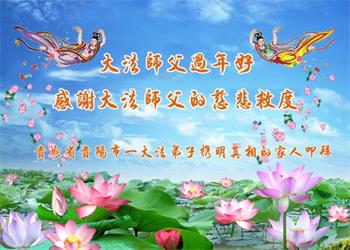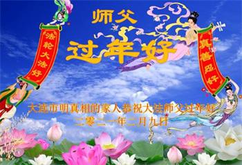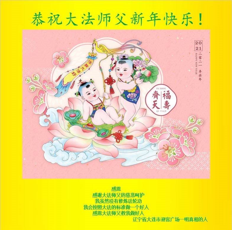 辽宁省大连明真相的家人恭祝大法师父过年好!