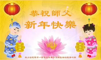 重庆市巴南区一大法弟子代未修炼的儿子、孙子给慈悲的师父拜年,恭祝师父新年快乐!