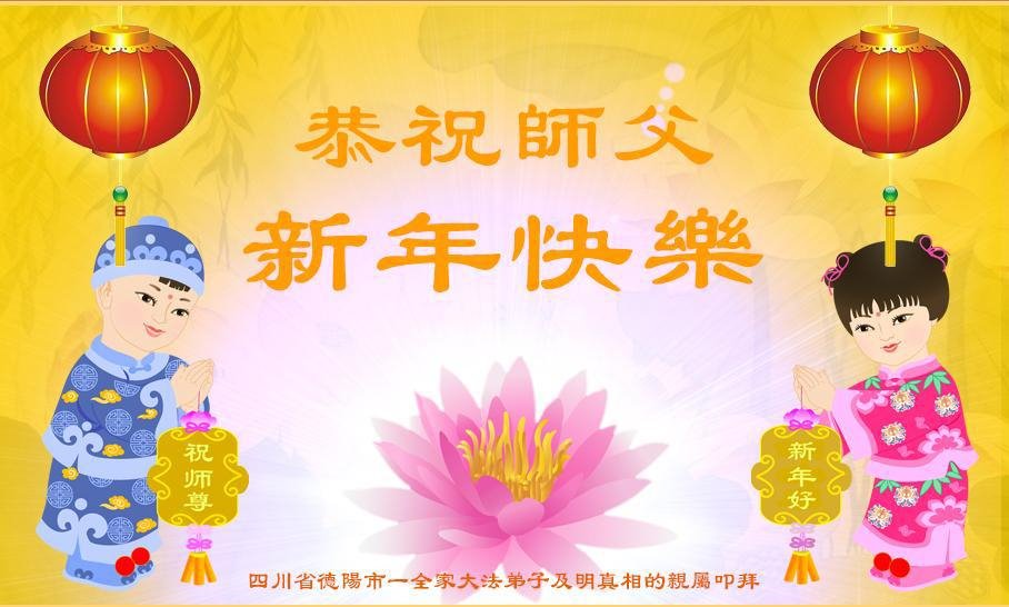 四川省德阳市一全家大法弟子及明真相的亲属恭祝师父新年好!