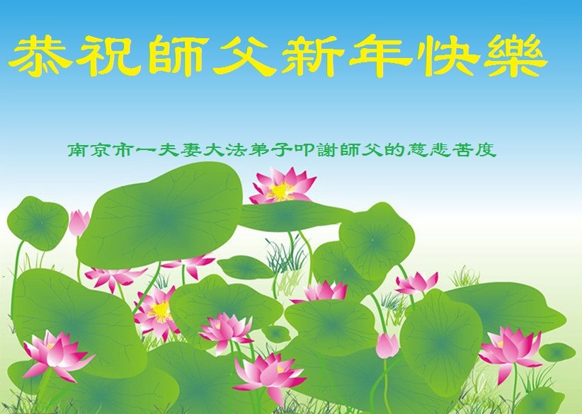 江苏省南京市一夫妻大法弟子恭祝慈悲伟大的师父过年好!