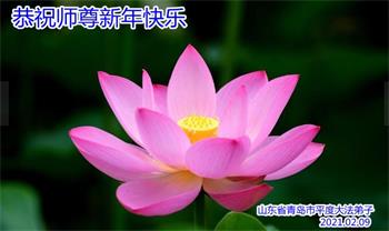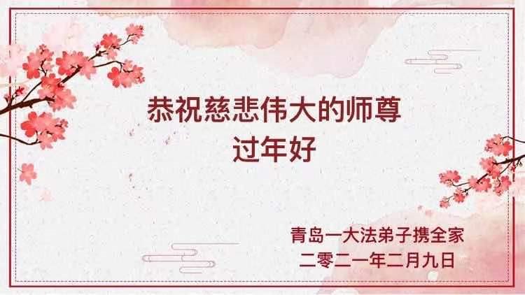 恭祝师父新年快乐! 感恩慈悲伟大的师父苦心救度,呵护弟子,弟子定不负师尊救度之恩,做好三件事,跟师父回家。叩拜师父。 山东青岛一学法小组大法弟子敬上 2021年2月9日