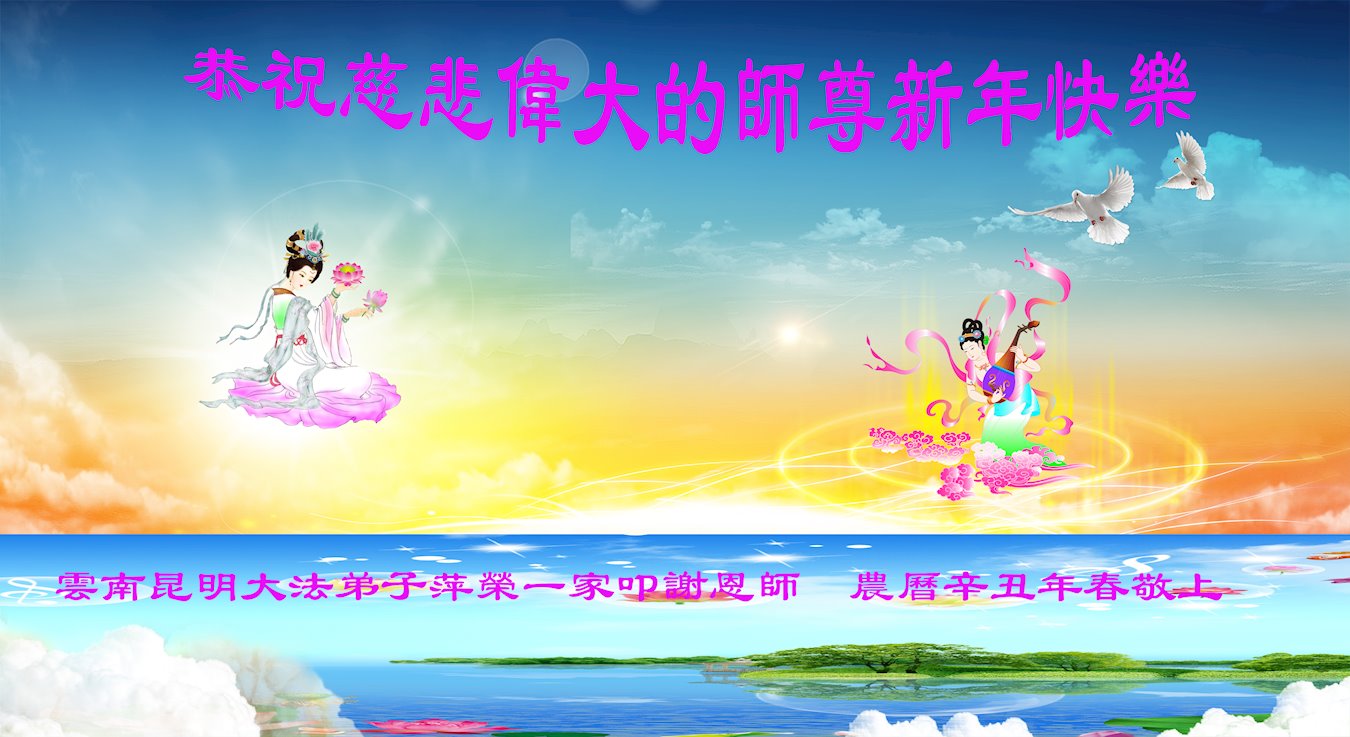 云南省昆明市大法弟子一家人恭祝慈悲伟大的师尊新年快乐!