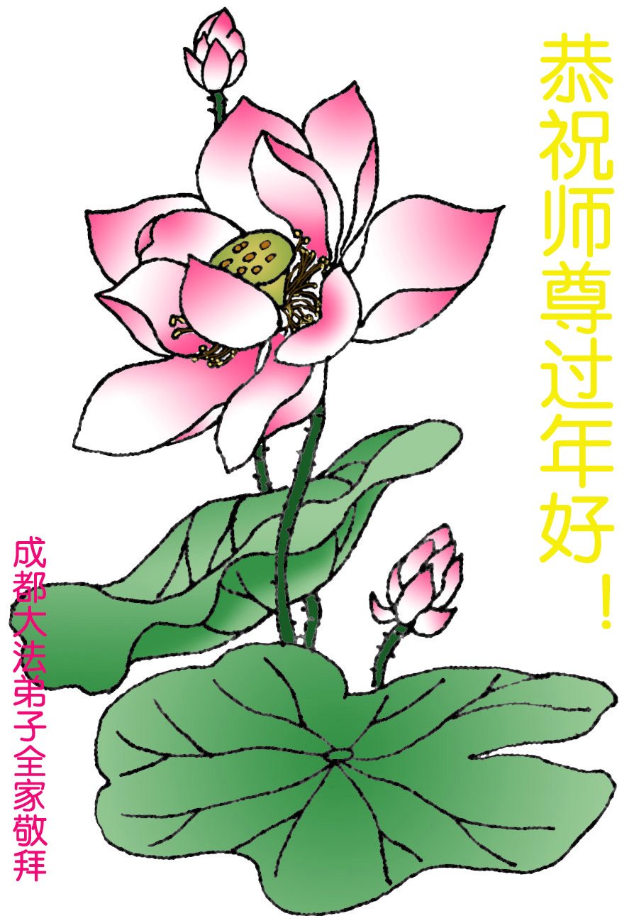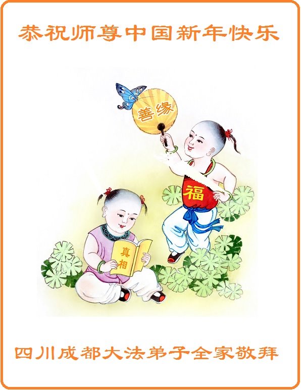 四川省成都市一大法弟子全家人恭祝慈悲伟大的师尊过年好!