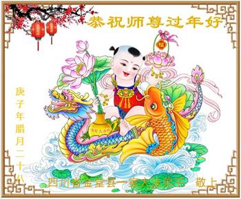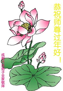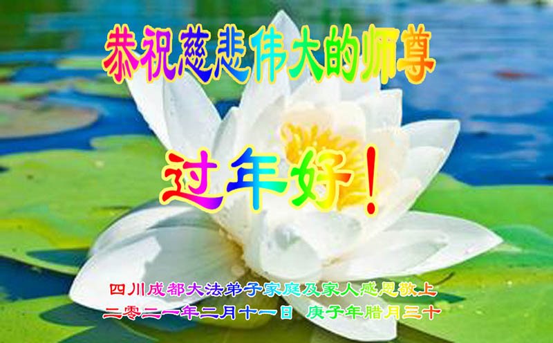 四川省成都大法弟子全家恭祝慈悲伟大的师尊过年好!