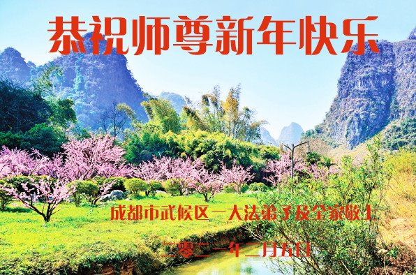 四川省成都市武侯区一大法弟子及全家恭祝师尊新年快乐!