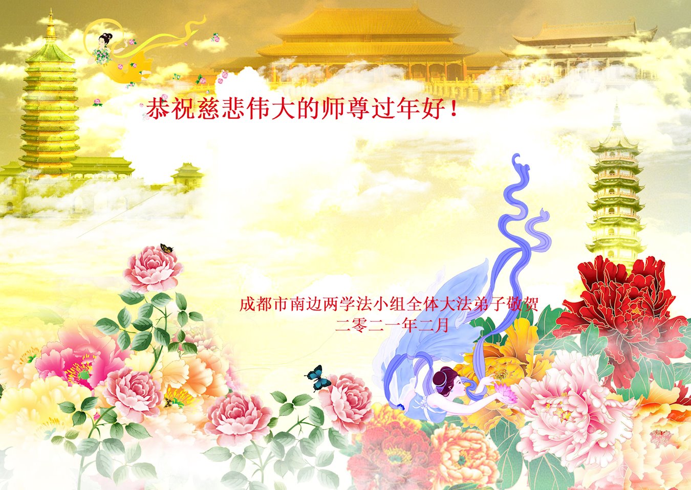 四川省成都市武侯区两个学法小组的全体大法弟子恭祝师尊新年快乐!